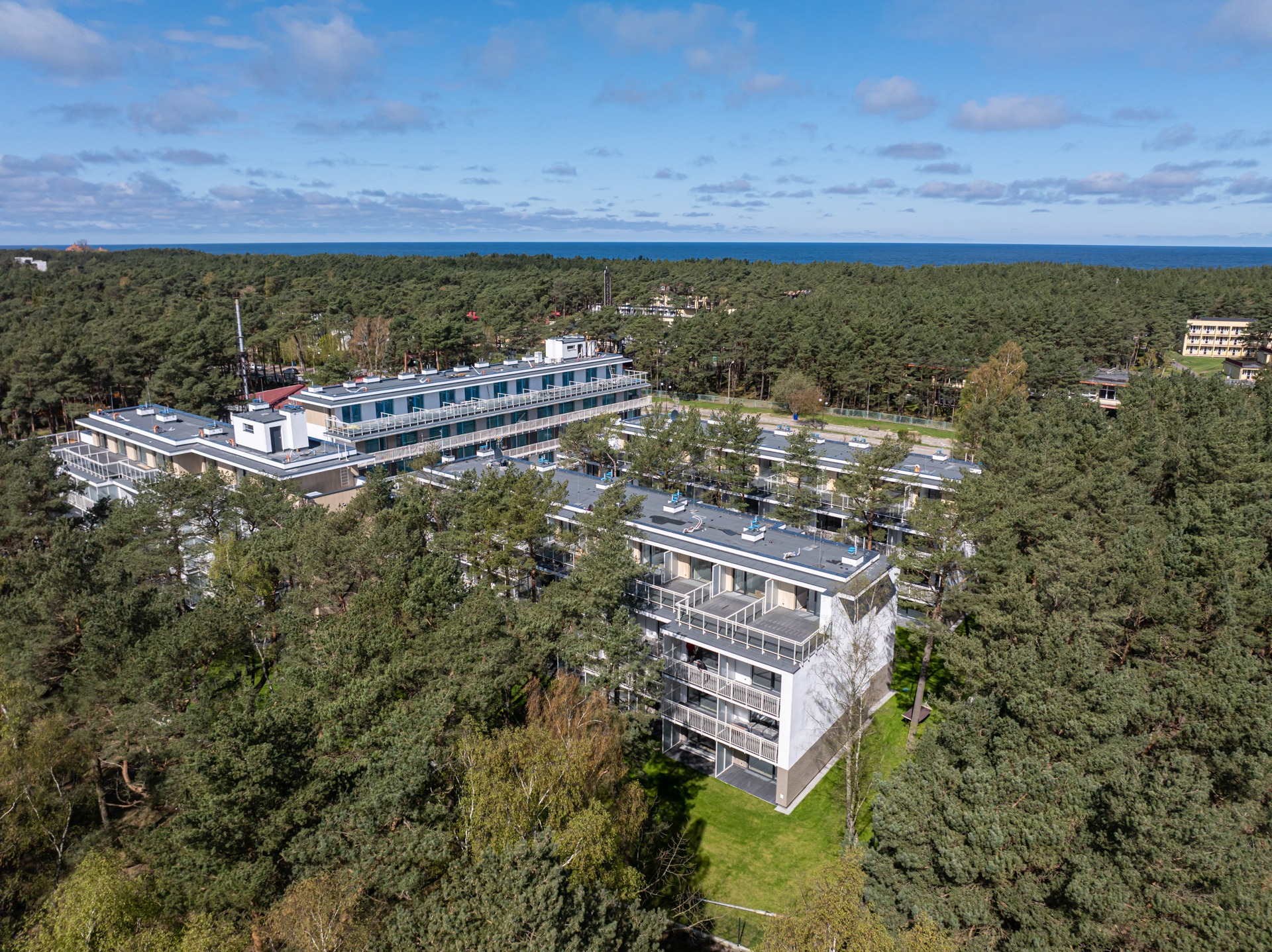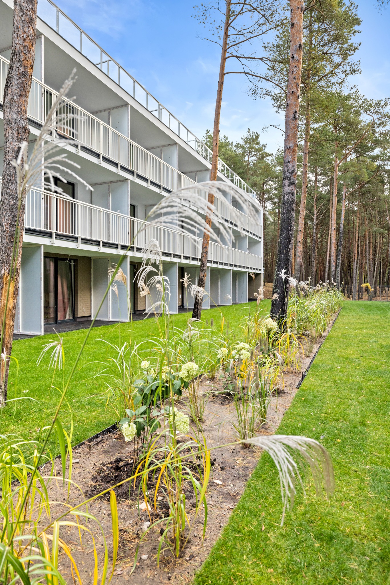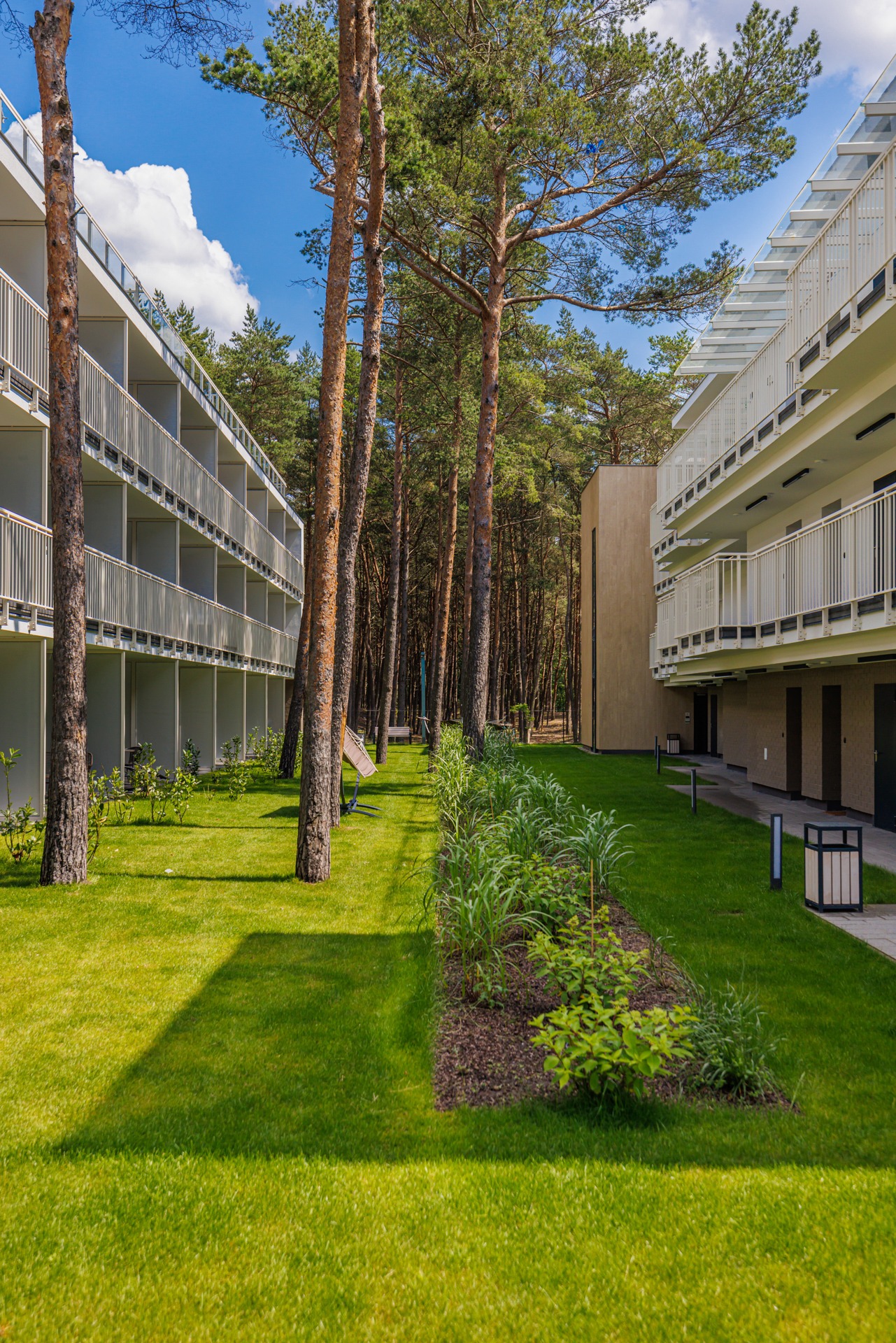 To leśne osiedle 129 apartamentów w otulinie parku Natura 200, oddalone 200 metrów od plaży.